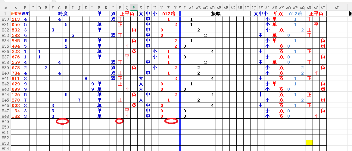 跨度:就是开奖号,最大数减去最小数所得的数,就是跨度。