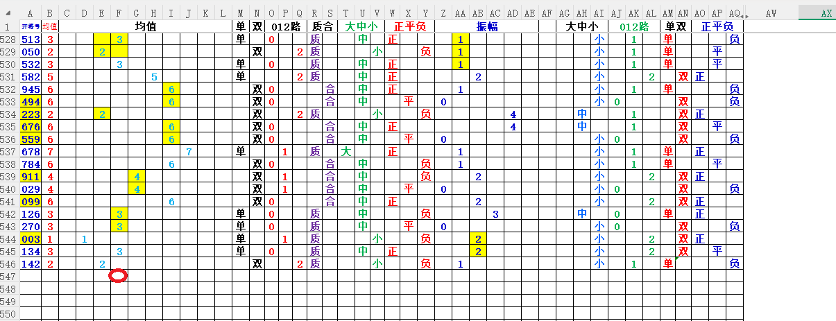 均值:就是开奖号每各数的总和除3,然后得到的余数,如果不够整除可以+1,-1,直到被整除得的数就是均值