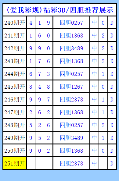 福彩3D第251期图文(爱我彩规),四胆推荐展示