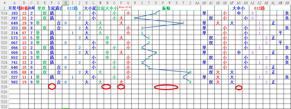 如上图2,012路分析,01路尾走比较好,关注0369258尾;
