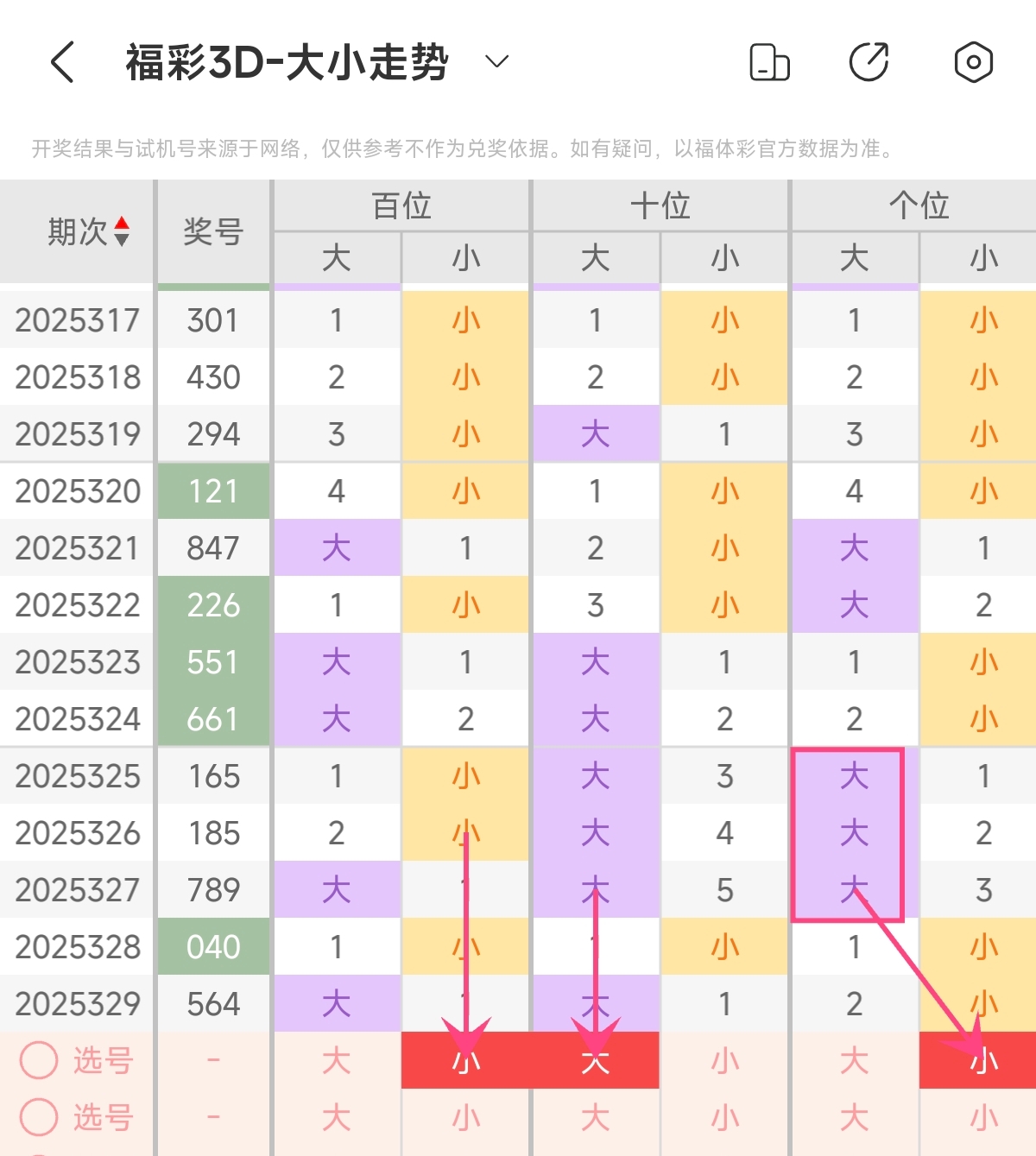 首先让我们回顾一下上期福彩3D第2025329期开奖号码为564,为组六形态,大小比为2:1,奇偶比为1:2,跨度为2,和值为15。