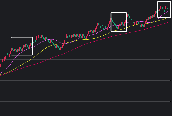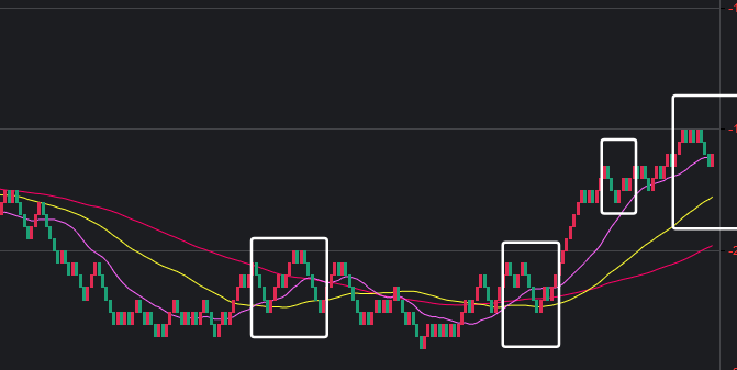 可以看到一些规律,在粉框中,如果一致,那么接下来这些跨度也会出。