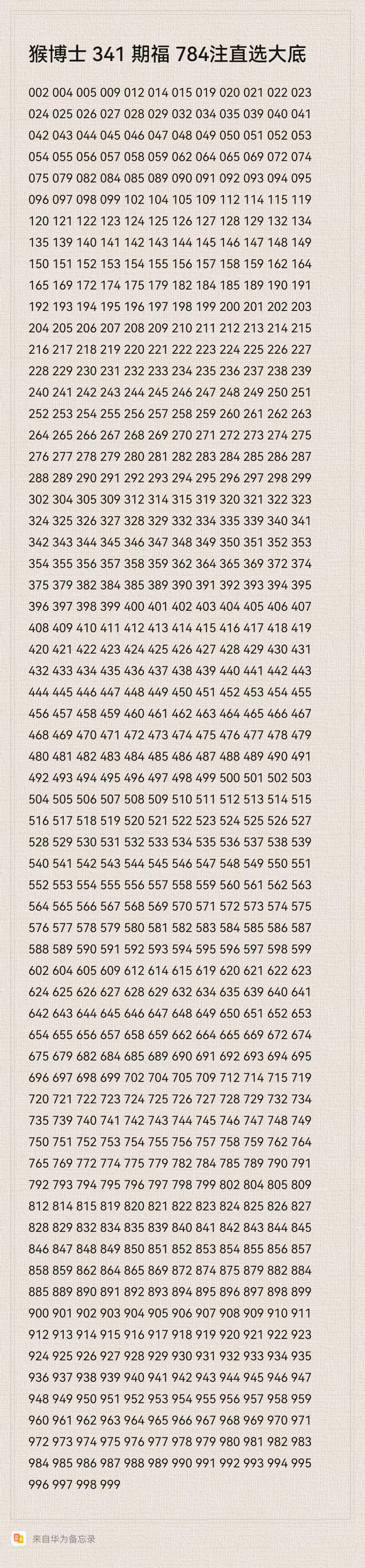 猴博士341期福784注直选大底:(可以当母底用,然后进行缩水)