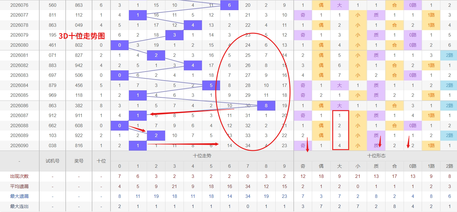 福彩3D十位分析:第2026090期十位开出号码1属小奇数号码前端。以历史100期数据为例十位奇偶比约为53比47,大小比约为49比51近期大小相差1点,根据求均衡的规律开出小数的概率比大数高一点。上期我们分析偶数经过连续回补后有走奇数的可能,开出奖号1小奇数符合我们的预期,近期3D十位走势中,7作为明显的冷号已经遗漏多期未出,冷态积累较为充分,从历史出号规律来看,极端遗漏往往伴随着较强的回补需求,随着其它中段数字的反复开出,7的补位概率正在逐步提升,接下来需重点防范其随时反弹,可作为防守或博冷策略的核心选项。与此同时,0则展现出典型的热号特征,近期开出频率明显偏高,连出或隔期重现的形态较为常见,属于持续走热的态势,虽然热号有惯性延续的可能,但也要警惕其由热转温的节奏变化,所以福彩3D第2026091期十位推荐05679。