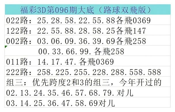 福彩3D第2026096期大底参考:
