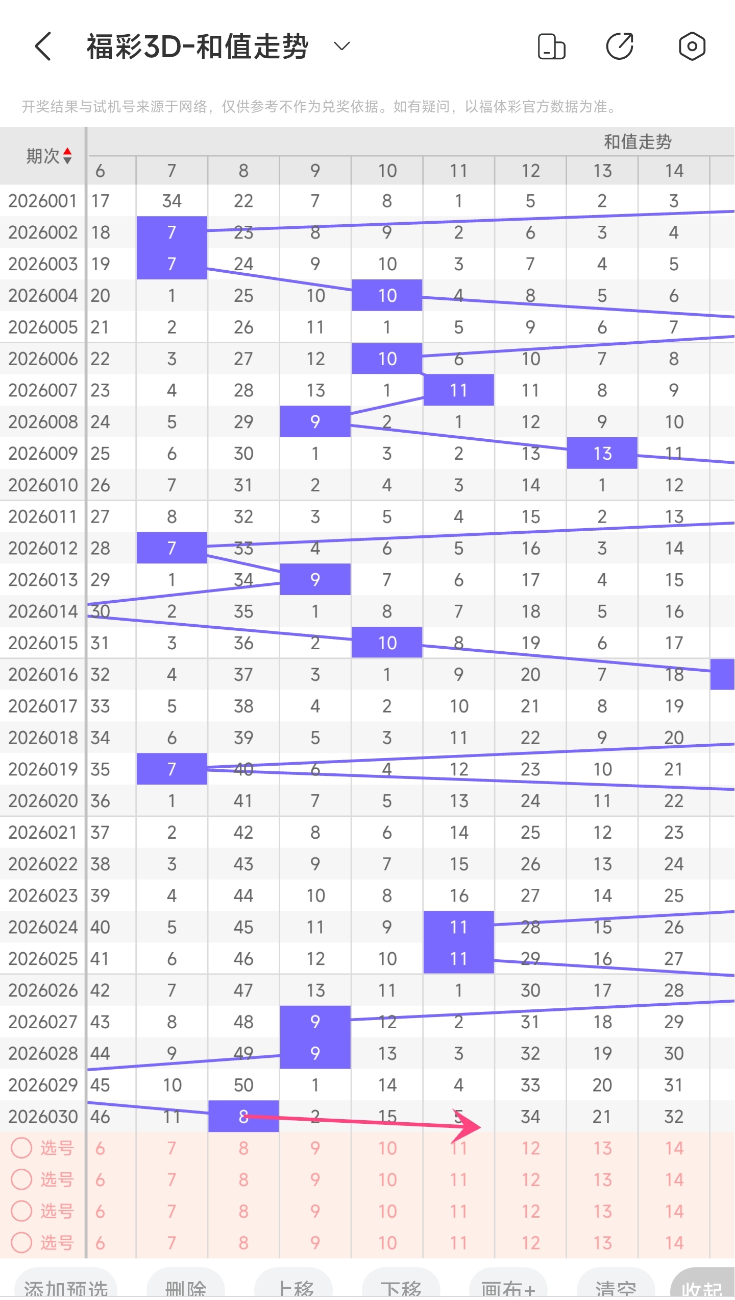 一、通过和值走势分析: