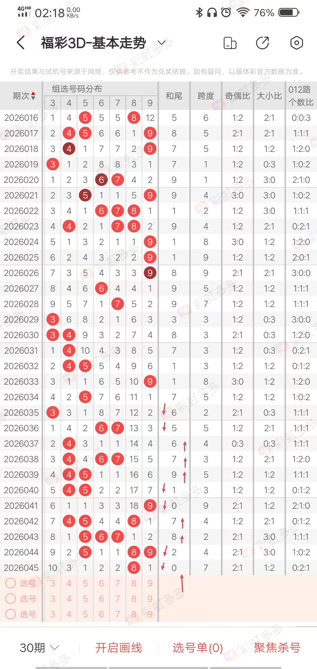 杀神福彩3D2026046期规律走势分析:上期单挑7跨