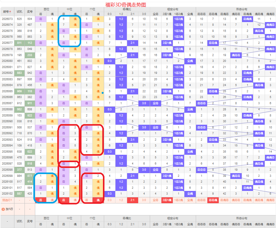 上期奇偶比是0:3,全偶的号码组合方式,从近五期的奇偶数出现情况看,奇数出现7次,偶数出现8次,奇数偶数号码出现较平均,本期侧重两奇的号码组合,侧重奇奇偶或偶奇偶的号码组合方式,根据奇偶形态做五码定位13579/13579/02468或02468/13579/02468