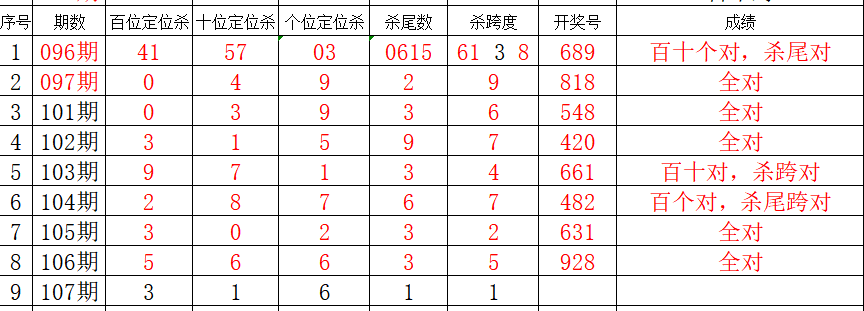 金莱3D第107期:上期金胆9对,金胆连中2期