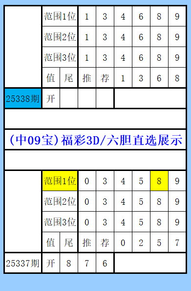 福彩3D第338期图文(中09宝),六胆推荐