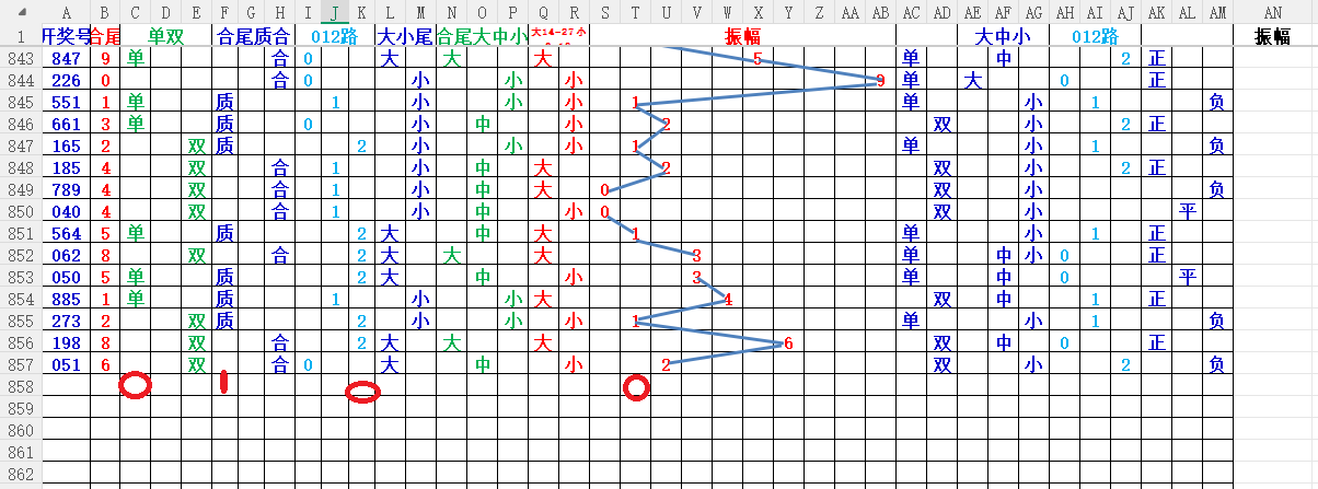 如上图2,012路分析,01路尾走比较好,关注0369147尾;