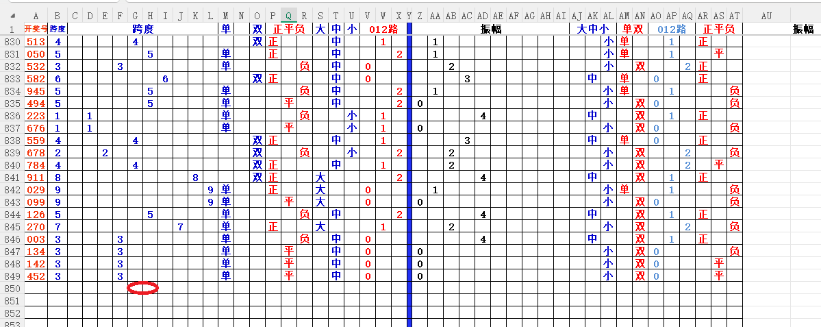 跨度:就是开奖号,最大数减去最小数所得的数,就是跨度。
