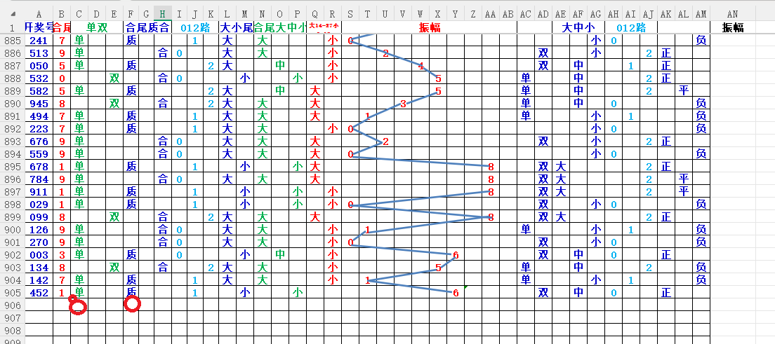 如上图2,012路分析01路尾走比较好,关注0369147尾;