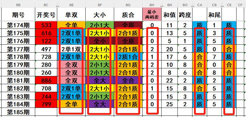 3,最近10天当中,两质一合开出1次,两合一质开出7次,全质数开出1次,全合数开出1次。近期需重点关注开奖号码两质一合的回补!