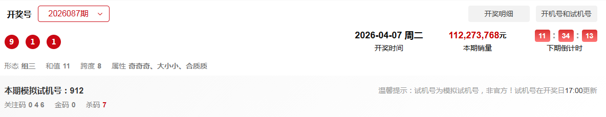 福彩3D第088期:上期通杀一码命中,定位杀一码命中