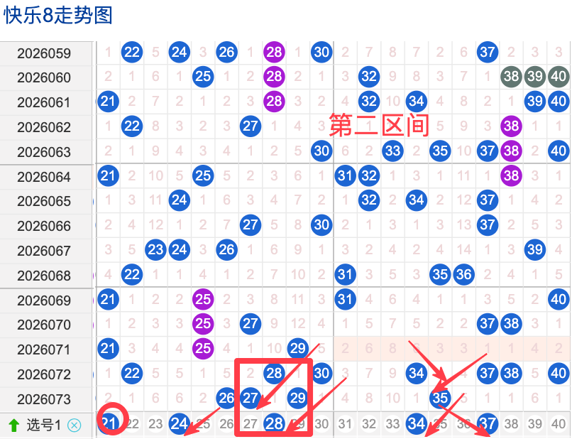 上期二区开出4个奖号(26.27.29.35)上期回顾二区开出4个奖号二区间在上期落位同比前期的话呈现了一个递减的落位趋势,先来看本期号码24整体活跃度较温热,在近 30 期里有一定的间歇性出现,不是每期都开,近期整体走势还是很稳定。号码24近期热度较,间隔性整体比较热,说明其在当前阶段活跃度较注意防守。号码28近期活跃度较冷有一定的间歇性近期整体走势相对还不是很有特别明显的冷热趋势变化,号码3430期内活跃度较温热有明显的连续出现形态走势,整体表现比较温热