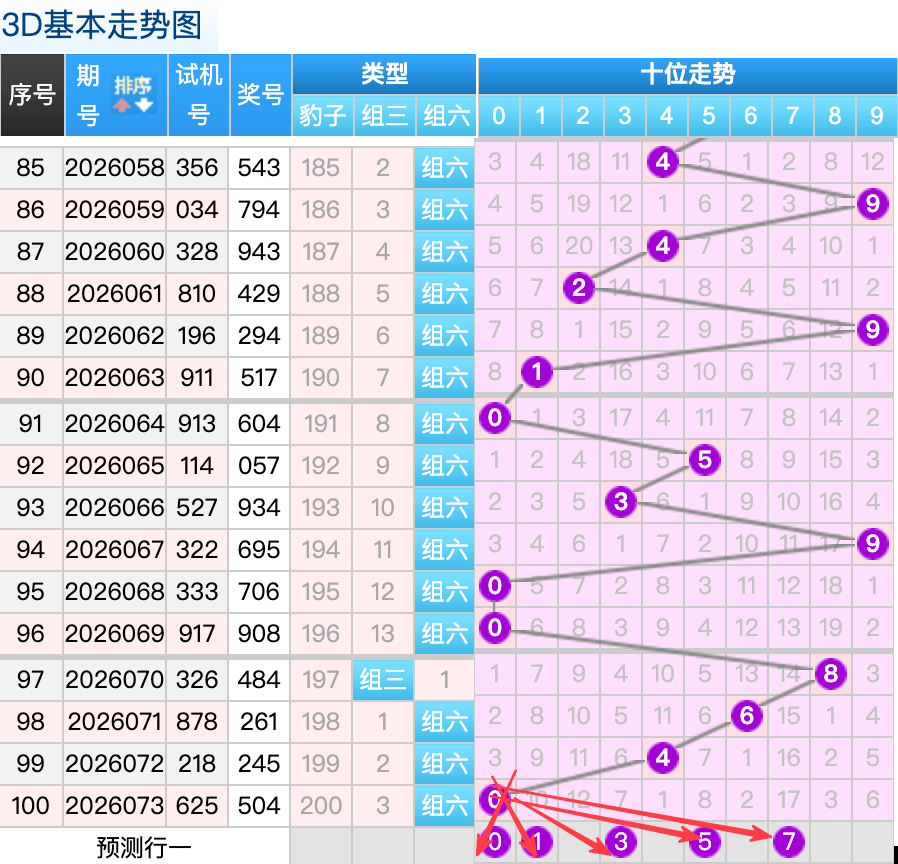 上期3D十位开出的奖号是0号,上期在十位上0号球这个号码是一个热号码的回补落位点,本期来看1号在十位上要注意这个号码是有机会继续顺着上期的0号球继续走出冷号码的落位趋势这里的号码回补的落位形态注意防守就好,再来5号球这个点位注意防守走出4跨的落位趋势7号球这个号码是常搭配的冷码回补要注意参考选择一码。0号球要注意走出重码的概率