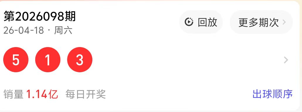 福彩3D 2026098期 上期回顾
