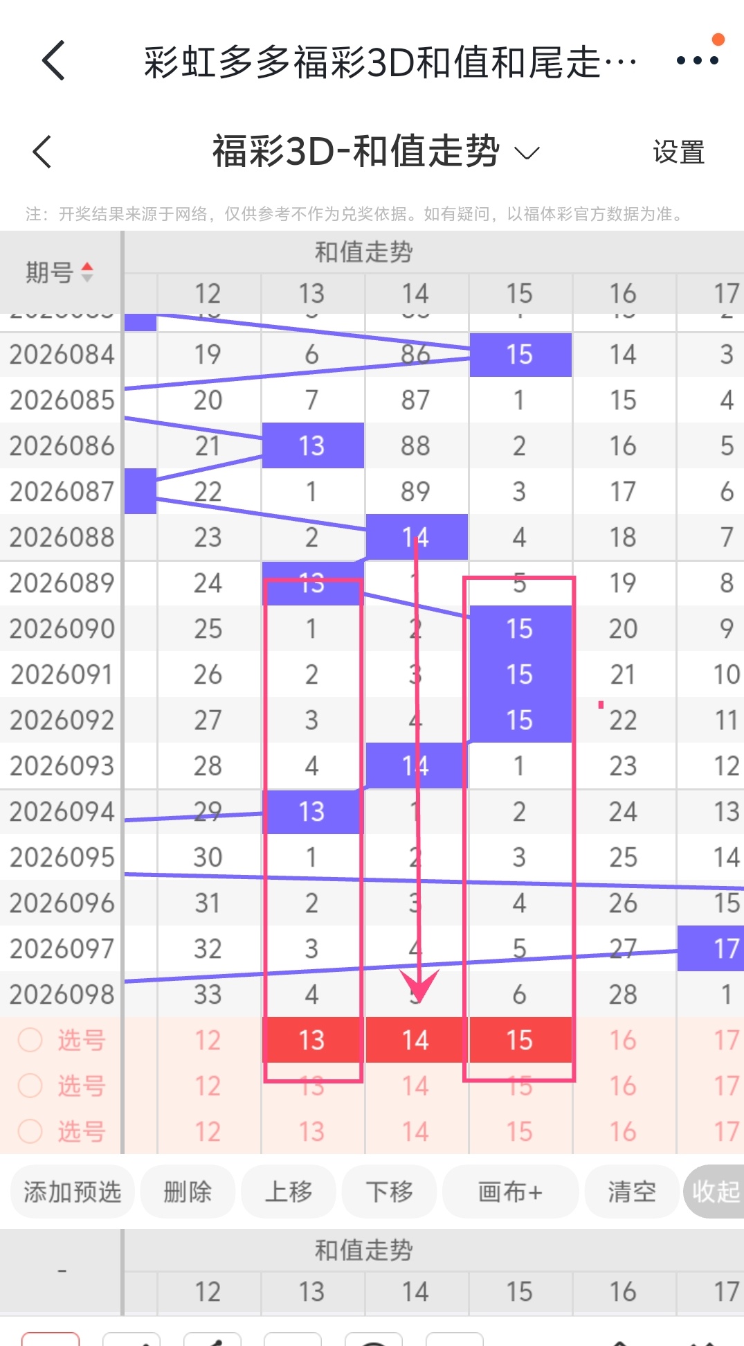 推荐和值:13、14、15。
