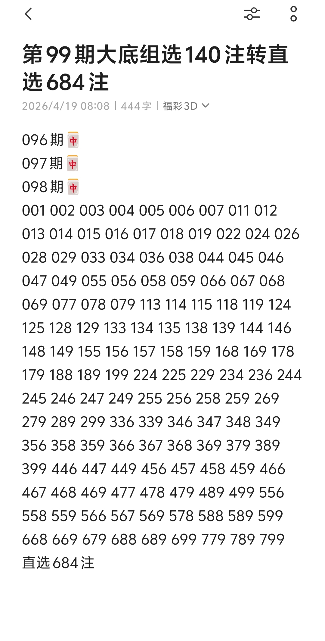 第99期大底组选140注转直选684注