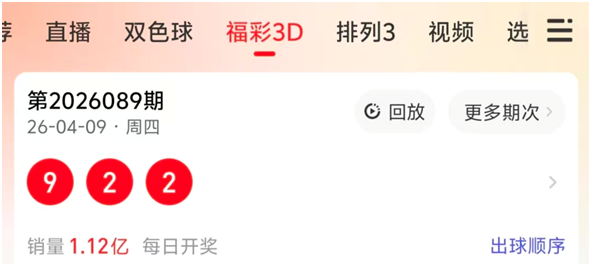 首先我们来回顾一下福彩3D第2026089期的开奖号码结果922,和值为13,和尾为3,跨度7,奇偶比1-2,大小比1-2,012路个数比为1-0-2.