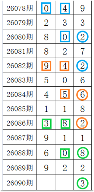 综上所述,福彩第2026090期可能出现的号码有3、8、0、9这四个数。