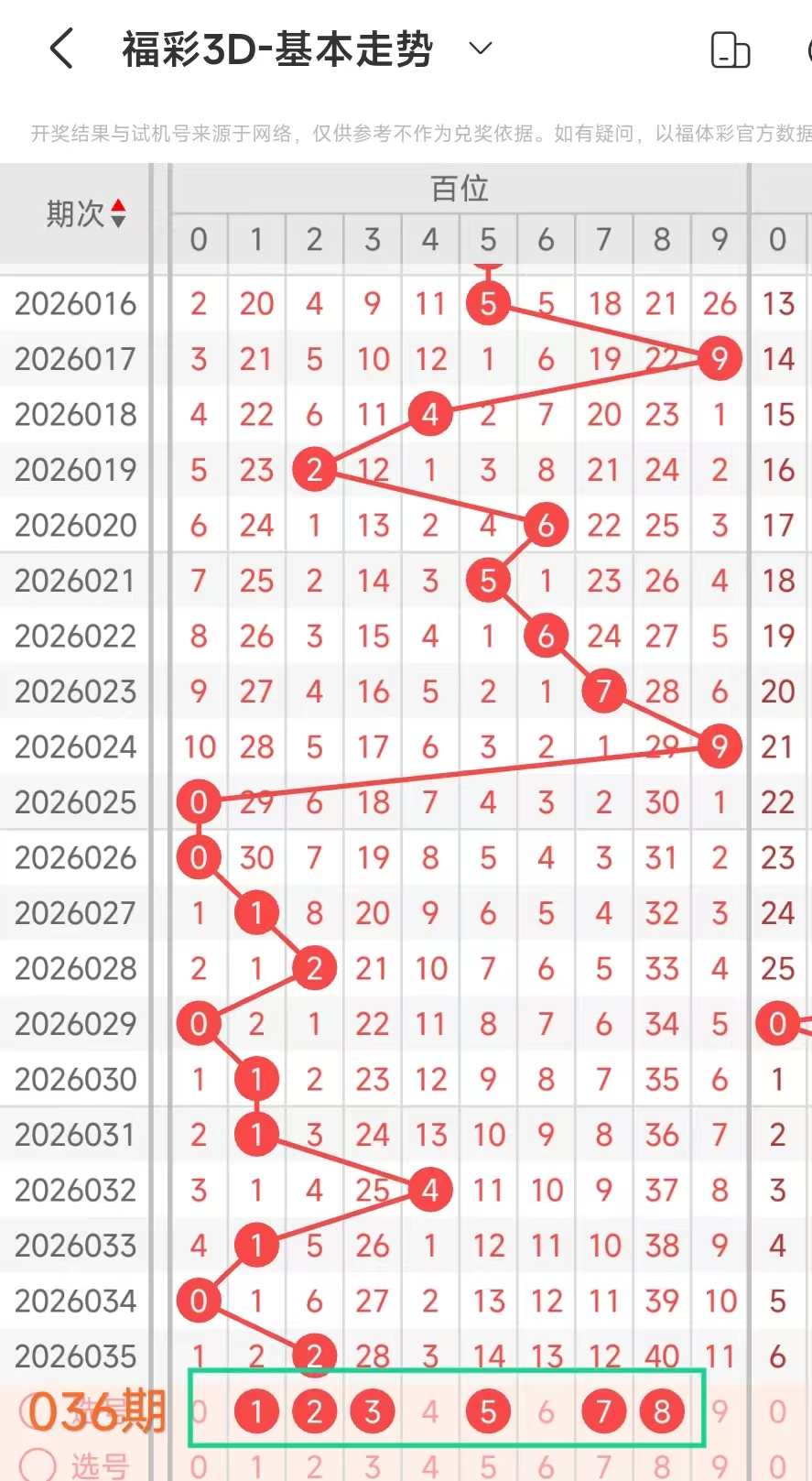 经统计0号出现8次、1号出现5次、2号出现6次、3号出现10次、4号出现6次、5号出现9次、6号出现9次、7号出6次、8号出现6次、9号出现4次.统计后出现次数靠前的数字作为我们的备选号码.其号码有03568等