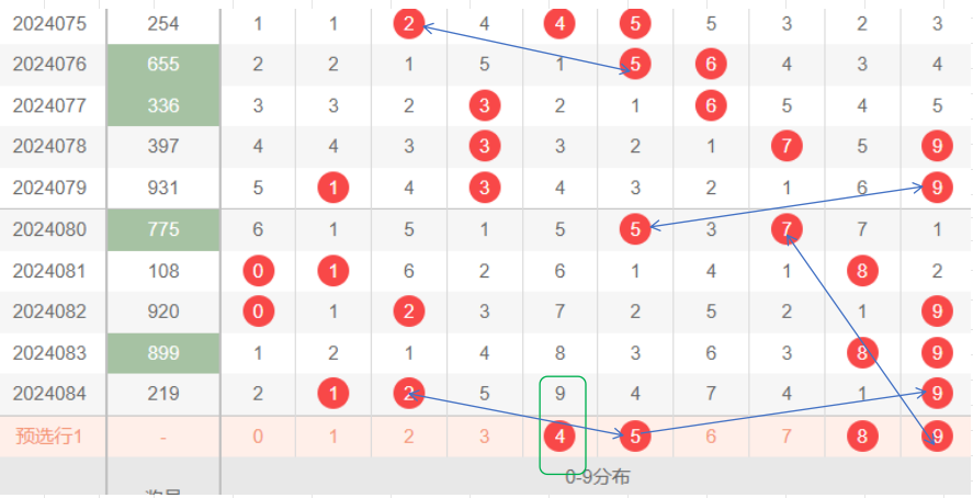 1:上期开出219,个位形态为大,奇,为0路.那么本期个位根据以往开奖数据分析,可能给出的码有以下形态,重码9,邻码80,孤码234567.上图所示分布,个位上期奖号开出次数最多91785.个位可以考虑两码:5 4.十位形态为小,奇,为1路.那么本期十位精析,重码1,邻码02,孤码3456789.十位开出最多码为05479,十位考虑:4 9.百位形态为小,偶,2路,百位精析,重码2.邻码13,孤码03456789.百位出码走势最多码为23467,百位考虑:48.这是分开数据分析,可以有一组复式54980五码.最终结果还得分析