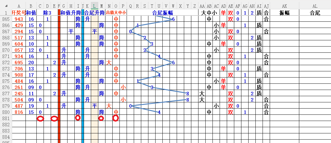 如上图3,和值升降平分析,和值升概率大,小于15和值