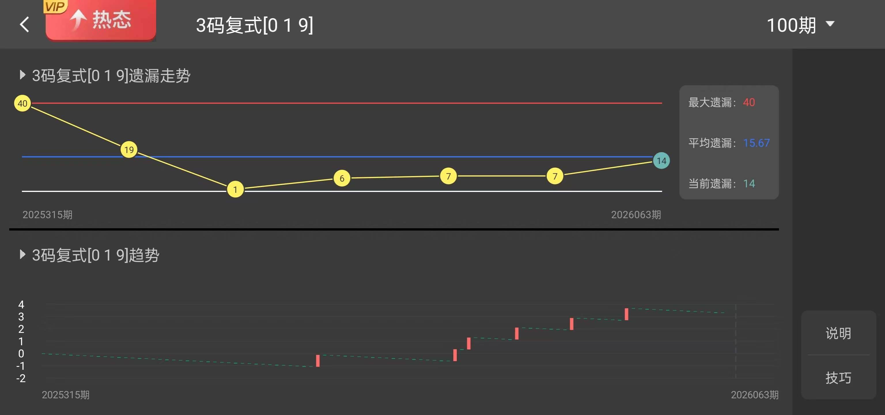 从和值与跨度的关键指标来看,和值是福彩 3D 选号的重要参考,近 6 期奖号和值始终稳定在 12-20 的区间内波动,整体和值均值约 15.17,无大幅跳开常规区间的情况,459 的和值为 18,处于近期和值的核心波动区间内,未超出常规范围,完美契合和值短期回归的经典选号逻辑;跨度代表奖号中最大数与最小数的差值,近 6 期奖号跨度集中在 5-7 的高频区间,是近期出号的核心跨度范围,459 的跨度为 5(最大数 9 减去最小数 4),正是近期的高频跨度值,精准贴合近期跨度的出号特征,让该组合在跨度维度也与短期出号规律高度契合。