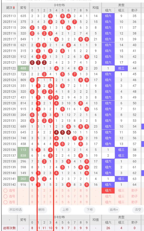 • 邻号:每期邻号数量通常为2-6个,组六形态下邻号较多,实际投注建议筛选1-2个邻号组合。
