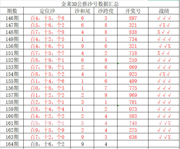 金莱3D第164期:上期单挑和值15对,精华9注单式命中636直选等