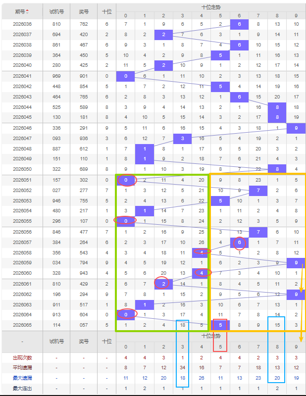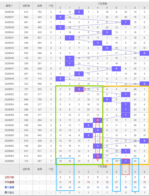 福彩3D第2026066期个位先分析奇数偶数,近十五期开出奇数号10期,开出偶数号5期,开出偶数号的概率比开出奇数号的概率小。近十余期都是奇数偶数间隔开出的,上一期又开出了奇数7号,本期还是看好增加偶数,建议考虑遗漏期数较大的偶数号,比如8号是个位遗漏期数最大的,且达到平均遗漏期数和最大遗漏期数,还有6号都可以防冷号开出。
