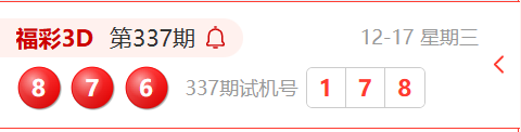 福彩3D第337期开奖结果为:876