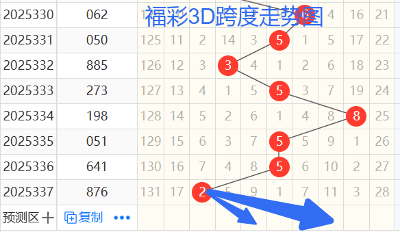 依次是58552跨度,按照路数转换关系来看,那么跨度我们暂定369147跨 ,本期个人比较看好4 7跨。
