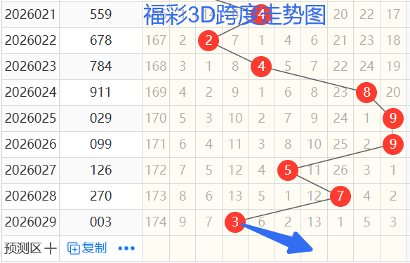 依次是99573跨度,按照路数转换关系来看,那么跨度我们暂定2 4 6 8跨 ,本期个人比较看好4 6 跨。