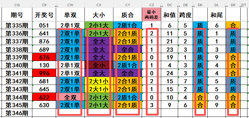 大家好,我是荒三帝丶。上期福彩3D第2025345开奖630,形态组六,最小两码差3,和值9,跨度6和尾9,两双一单,两小一大,两合一质。开奖号为0路00路组合,偶数奇数偶数组合。下面有一张数据统计图,图中可以看到很多遗漏信息。关注遗漏值,也是我们选号的一个重要参考数据!这对于一些做追号计划的彩民具有很大的参考意义!接下来,我们先看数据图:再来分析福彩3D第2025346期。