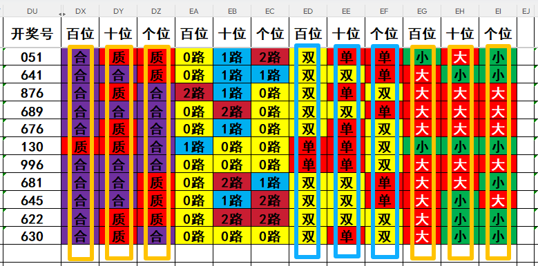3,目前开奖号个位号码球11天当中,质数(12357)开出了5次,合数(04689)开出了6次,本期重点关注开奖号个位号码球质数的回补!