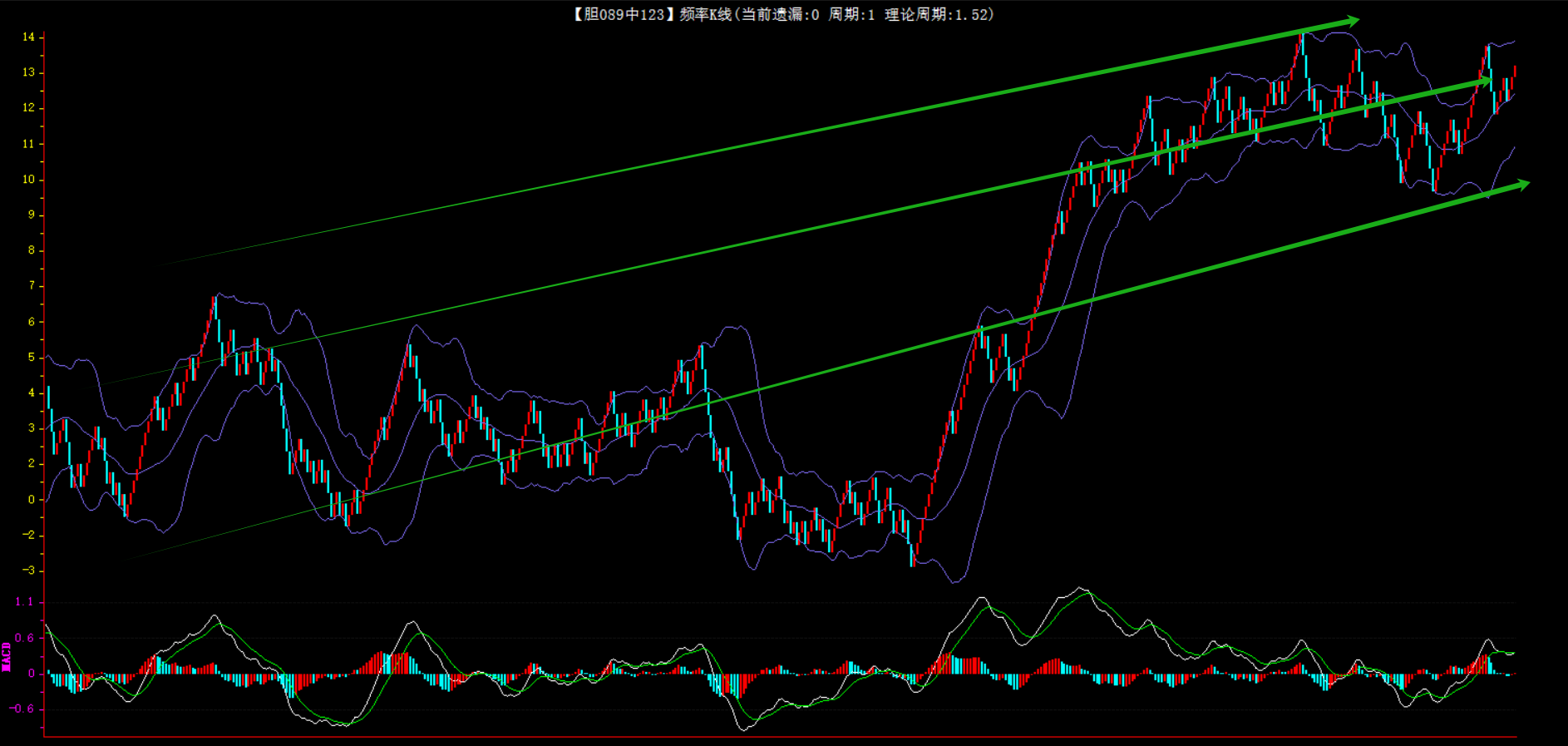 整体趋势上行,上边沿线趋势向上,下边沿趋势也是向上,节点震荡,当前连开3期,本期关注。