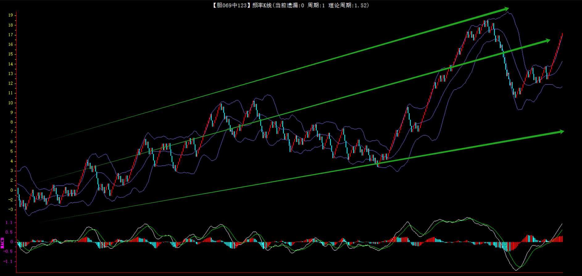 整体趋势上行,上边沿线趋势向上,下边沿趋势也是向上,节点震荡,当前连开14期,本期关注。