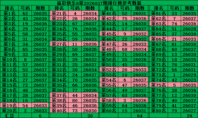截至2026038期最大遗漏的号码是11期的79号,提取最近11期的数据做为2026039期的参考数据: