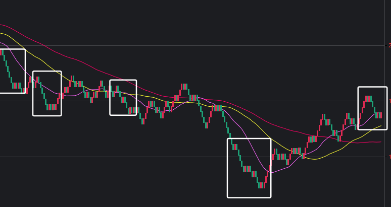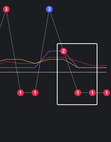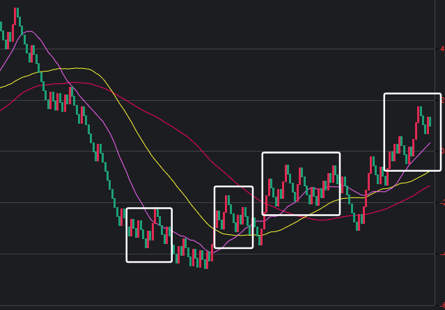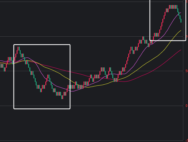 可以看到一些规律,在粉框中,如果一致,那么接下来这些跨度也会出。