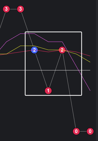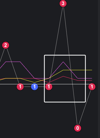 二码合2、4出1~2个:整体向下,近期向下,根据曲线来说,有两种规律,一种是接下来出一期,一种是接下来可能连续几期不出,继续找其他参考