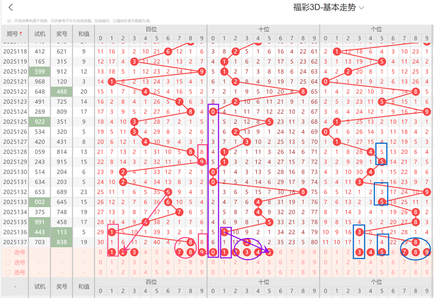 5、综上所述福彩3D-第25138期定位推荐信息如下: