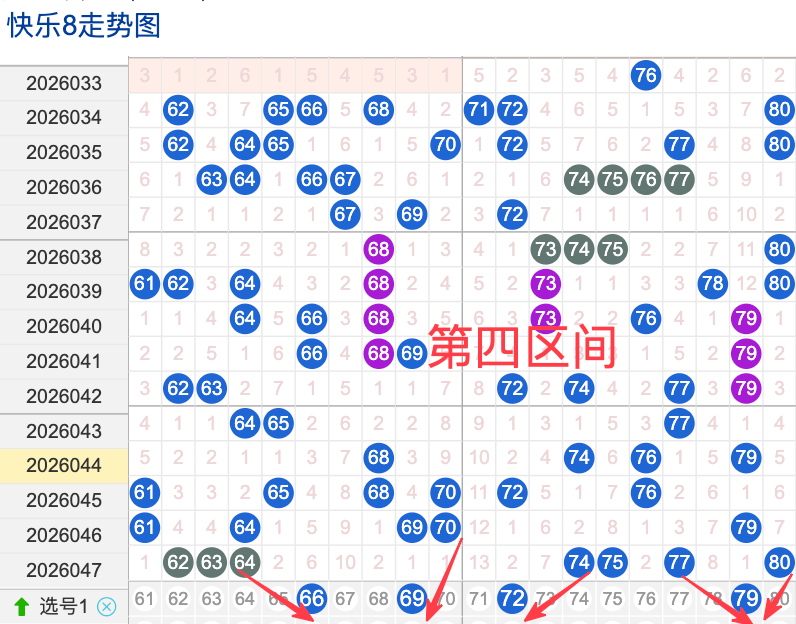 上期四区间开出了7个奖号(62.63.64.74.75.77.80)上期的四区开7个奖号呈现了一个递增趋势,开出的奖号7头回补3个6头回补3个,先来看号码66在近 30 期内属于还是很稳定的号码,近期出现频率相对较热,偶尔会间隔多期后出现一次,这个号码要注意防守,号码69具有一定的间歇性近期活跃度较稳定比如有时会间隔 75期就再次出现,也有时会间隔多期,近期整体出现频率比较稳定,近期还是要关注的.号码72活跃度近期比较,有一定的间歇性。活跃度近期较稳定,整体走势有一定的波动性.