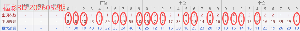 2026050期开奖号码689,我们可以看出近30期百位6出现3次,十位8出现4次,个位9出现5次。