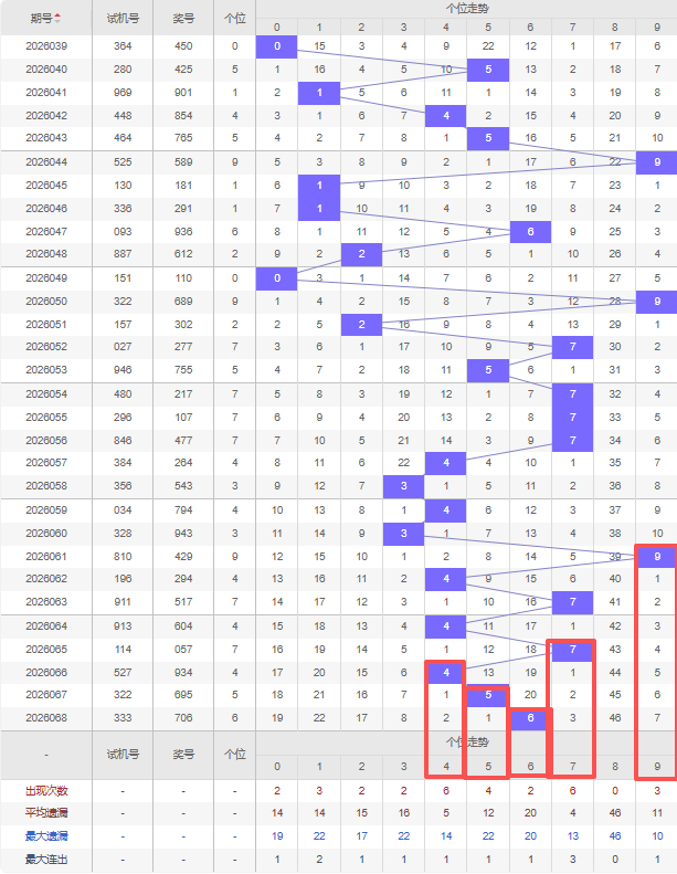 上期个位:6,近10期个位出号:4 3 9 4 7 4 7 4 5 6。最近10期大小变化分别:小小大小大小大小大大,奇偶变化分别:偶奇奇偶奇偶奇偶奇偶,质合变化分别:合质合合质合质合质合,根据近10期规律本期综上所述个位出号推荐5个号码:4 5 6 7 9。