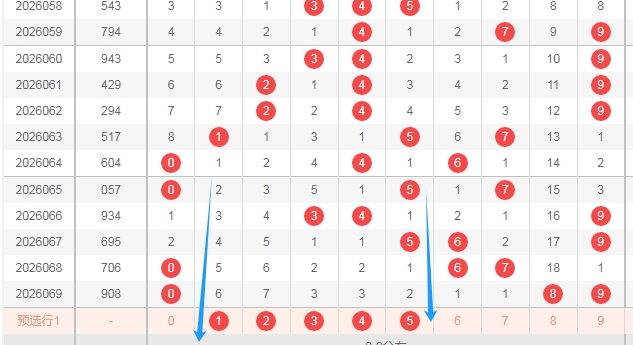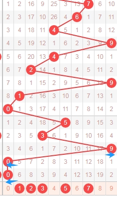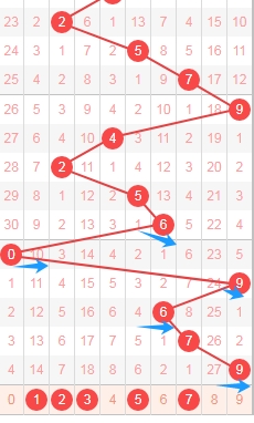 上图是福彩3D开奖号码从左到右定位第一位数字走势图,我标注出来的蓝色小箭头表示的都是合数数字,很明显最近6期开奖号码中开出了5期合数数字,一期质数数字,那么本期第一位数字可以关注质数数字12357,个人最看好数字1235。