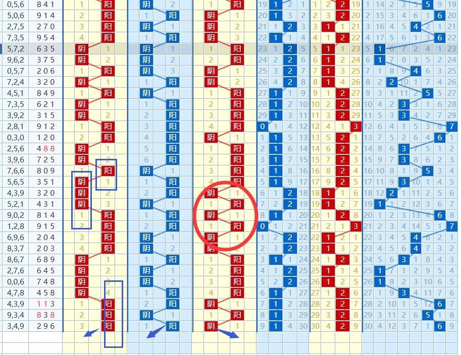 本期的阴阳可以大胆排除掉全阴数,近期阴数1/2连下趋势明显,本期依旧要主打1/2阴数的继续开出,小防0阴数的变动。