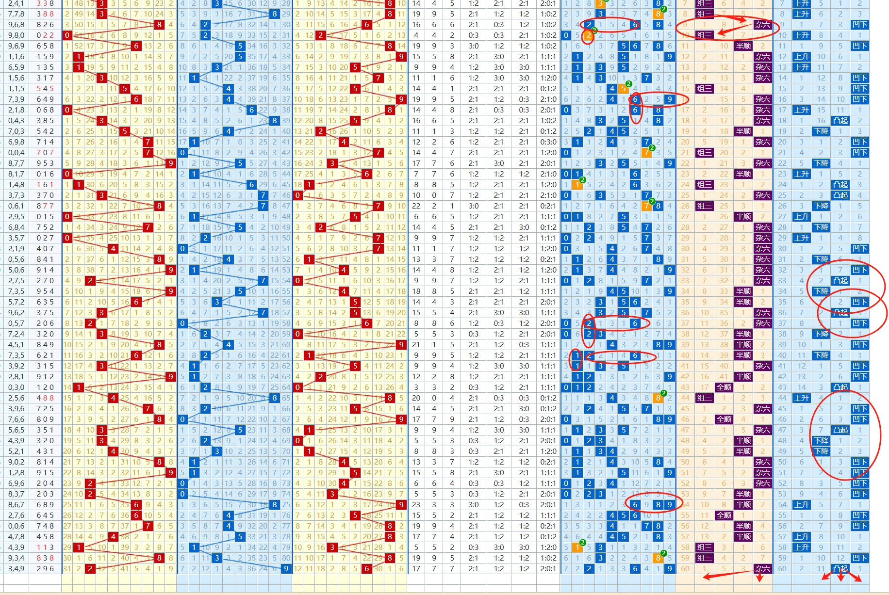 上期又开出杂六类型,结合近百期的历史开奖来看,两连组三下期开出杂六大概率回到组三走势,当然也出现过杂六连下的情况。那么本期可以优先考虑组三和杂六类型。